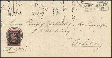 "1201" nebst Ra2 "Ratiborhammer" sehr klar auf frischem Brief mit perfekter 1 Sgr.