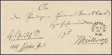 "Frankfurt a.O.", 1867, klarer Abschlag des seltenen offenen Einkreisers auf Brief (kl. Randspalt)