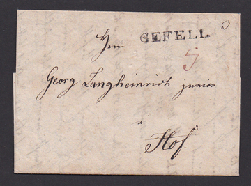 "Gefell", 1822, seltener erster L1 klar auf Brief mit Inhalt