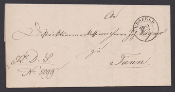 "Gersfeld", 1868, seltener nachverw. K2 des von Bayern an Preußen abgetretenen Postortes klar auf Brief mit Inhalt nach Tann
