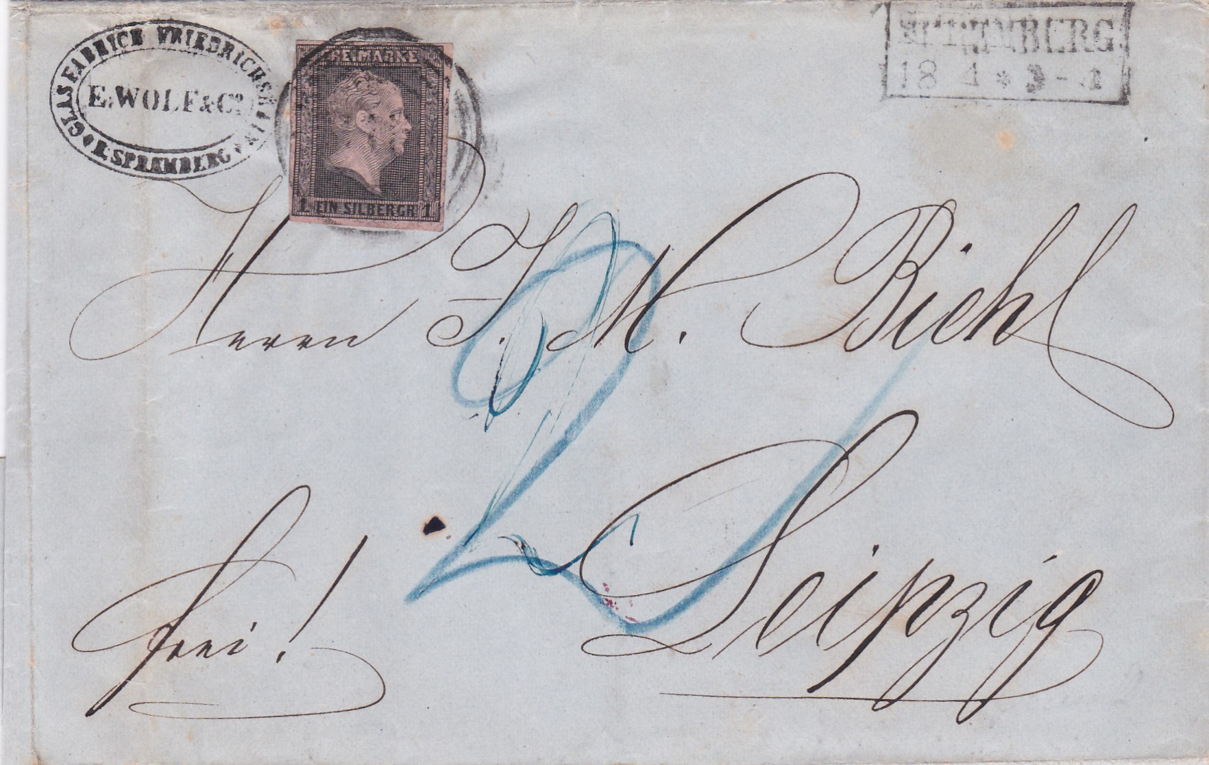 "1419" nebst Ra2 "Spremberg" auf unterfrankiertem und nachtaxiertem Brief mit 2 Sgr. nach Leipzig, Nachtaxe "2", kl. Mgl.