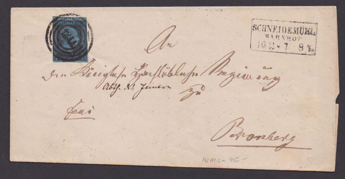 "1344" und besserer Neben-Ra3 "Schneidemühl Bahnhof" klar auf Brief 2 Sgr. (li. ber.)