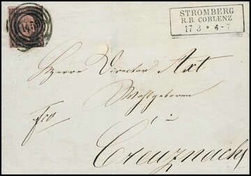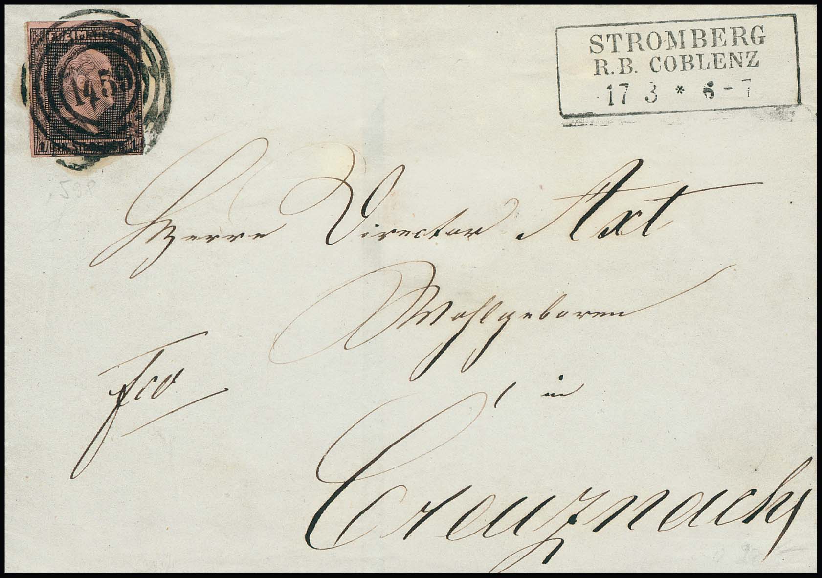 "1459" nebst Ra3 "Stromberg R.B. Coblenz" klar auf Brief mit winzig berührter 1 Sgr.