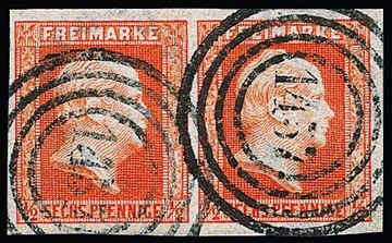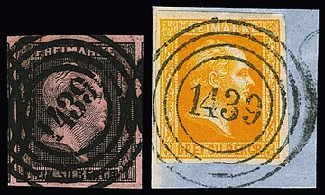 "1457" (Strehlitz) je klar zentrisch auf zwei Kabinettstücken 1 bzw. 2 Sgr., letztere seltene "Duplex"-Entwertung durch zusätzlichen Ra2 "Strehlitz"