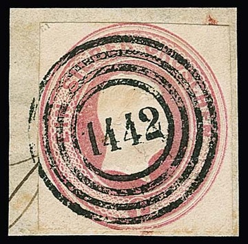 "1442" (Stollberg) klar auf Briefstück mit viereckigem Kopf-Ganzsachen-Ausschnitt 1 Sgr. (kl. Knitter)
