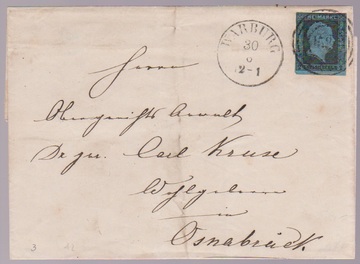 "1580" nebst K1 "Warburg" auf etwas fehlerhaftem Brief 2 Sgr.