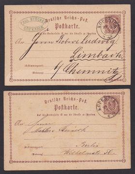 "Köpenick", nachverw. K2 auf elf Belegen (eine Vs.) NDP/Brustschilde, ferner hs. Bahnpost-Aufgabe auf NDP-Ganzsache 1 Gr. (Gebrauchserhaltung)
