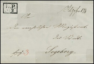"Hanerau", 1850, der Landpost-Ra2 "L.P. No. 2", nebst hs. Aufgabe "Itzehoe", auf Faltbrief nach Segeberg, Brief deutliche Tesaspuren