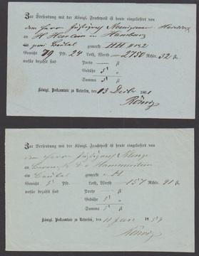 "Segeberg", 1849-1863, fünf Postscheine, u.a. zwei Vordrucke der Fahrpost