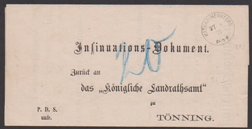 "Husum", 1811-66, fünf Postscheine, vier Ortsdruck "königl. Postcomtoir"