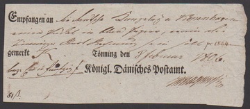 "Tönning", 1806 ("königl. Dänisches Postamt") und 1828 ("königl. Postamt"), zwei versch. Ortsdruck-Postscheine