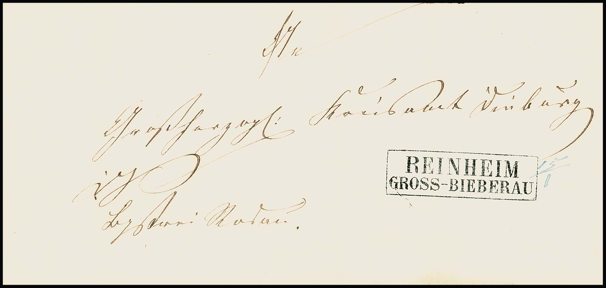 "Reinheim-Gross-Bieberau", seltener Postablage-Ra2 als Aufgabestempel auf zwei Ortsbriefen aus gleicher Korrespondenz (1866)