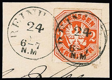 "Reinheim", nachverw. K1 auf Kabinettbriefstück mit Preußen 2 Kr. orange