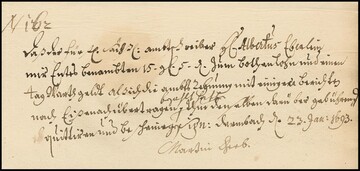 "Dermbach", 1693, zwei frühe handschriftliche Postquittungen vom Dermbacher Amtsboten Valtin Lesser für Postbotendienste bzw. Botenlohn nach Eisenach