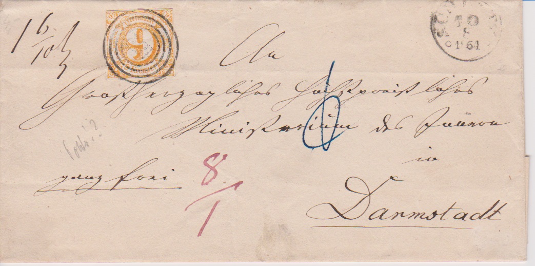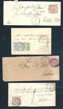 "65" nebst K1 "Schluechtern" auf Postanweisung mit 1 Sgr., dazu loser NS, K1 auf 3 Sgr., sowie vier Nachverwendungen (teils Mgl.)