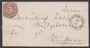 "152" nebst K1 "Schleiz" auf Doppelbrief mit 9 Kr. (kl. Druckstelle, Mi. 250,-)
