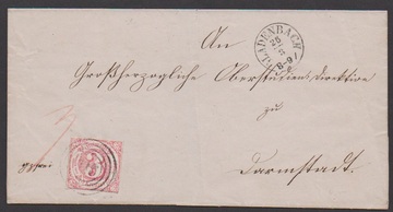 "90" nebst K1 "Assenheim" auf Landbestellbrief mit 1 und 3 Kr.