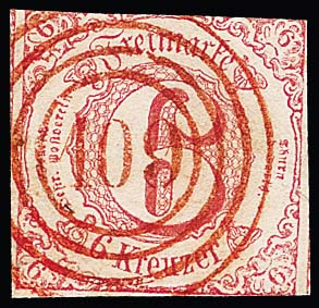 "109" (Erbach) in rot sehr klar auf 6 Kr. rot (Taxisschnitt)