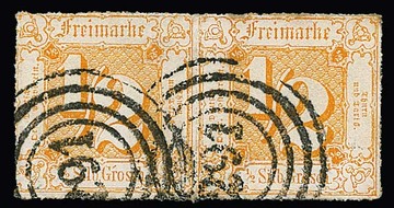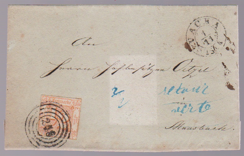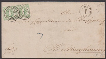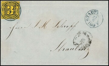 "243" nebst K2 "Stadtremda", je in seltener blauer Farbe, klar auf Brief mit breitrandiger 3 Sgr. schw./gelb (Bugspur), Fotoexp. Sem. Feuser + 1000,-