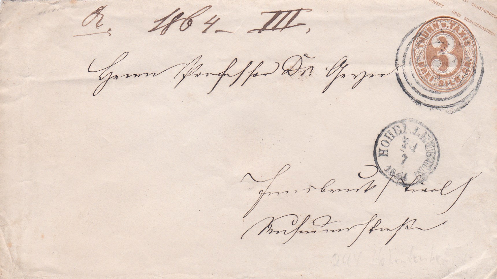 "294" zart nebst kleinem K1 "Hohenleuben" auf Ganzsache 3 Sgr.