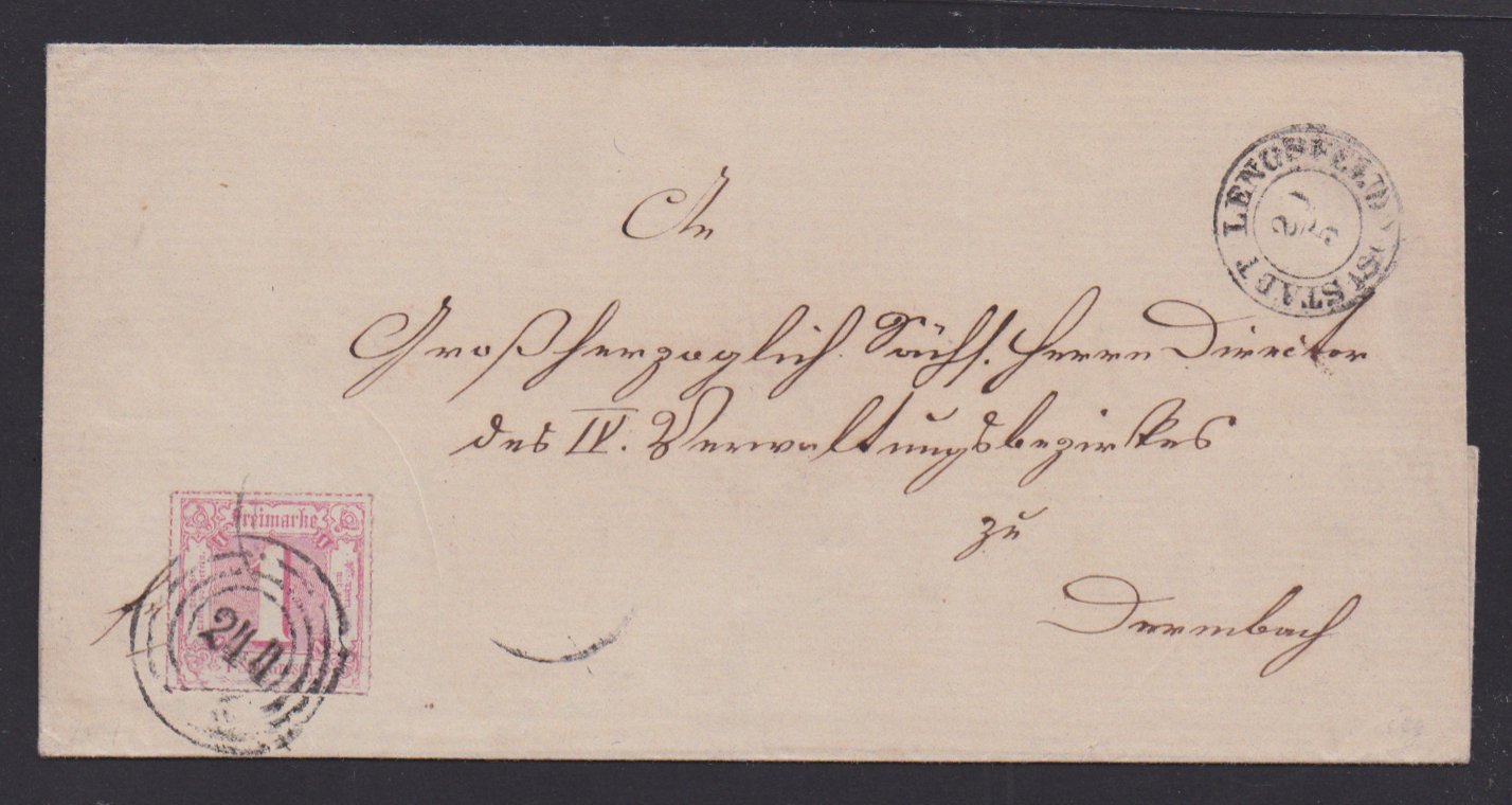 "270" nebst L2 "Coburg" auf Brief mit zweimal 1 Kr. schw./blaugrün, nebst 3 Kr., teils verschnitten, Brief nicht ganz kpl., 3 Kr. Porto plus 2 Kr. vorausfrankiertes Landbestellgeld