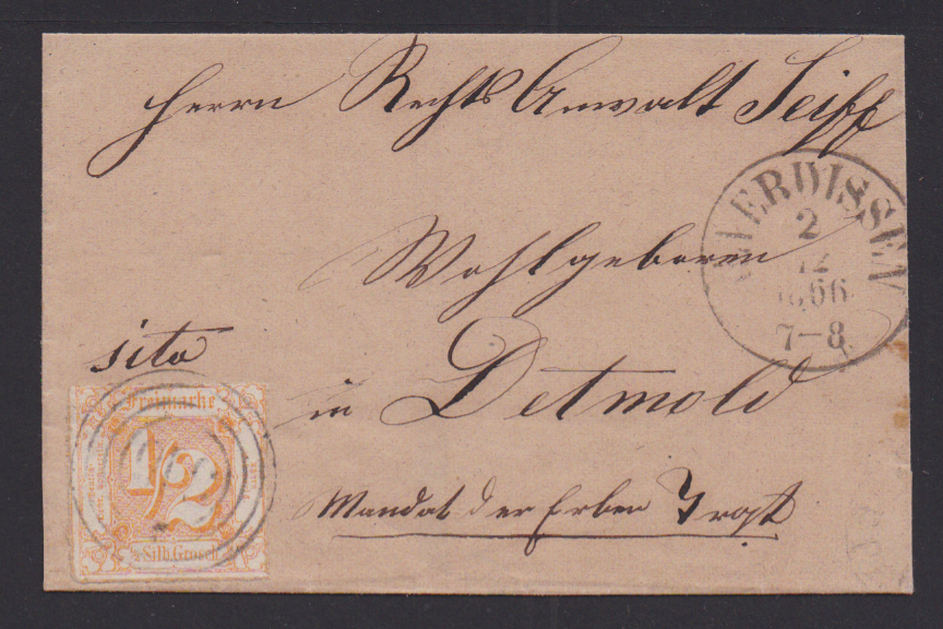 "358" nebst K1 "Friedrichswerth" auf Brief mit 1/4 und 1/2 Sgr. 1861
