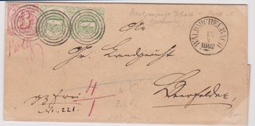 "333" nebst K1 "Stadthagen" auf gef. Bestellgeld-Brief (in der Faltung etwas eingerissen) mit 1/4 und 1 Sgr. im Nahbereich nach Bückeburg