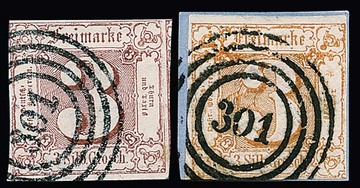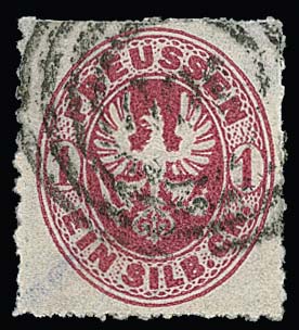 "300" von Hamburg als seltene Fremdentwertung auf Preußen 1 Sgr., sign. Sommer und Fotoexp. Brettl "allseits vollständiger Durchstich und in farbfrischer, feiner und tadelloser Erhaltung"