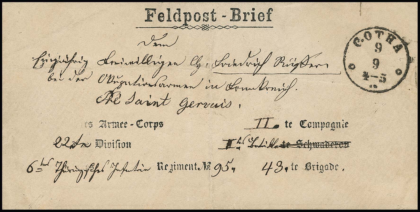 "Gotha", (1870), K1 auf "Feldpost-Brief" mit ungewöhnlichem Vordruck (Gebrauchserhaltung)