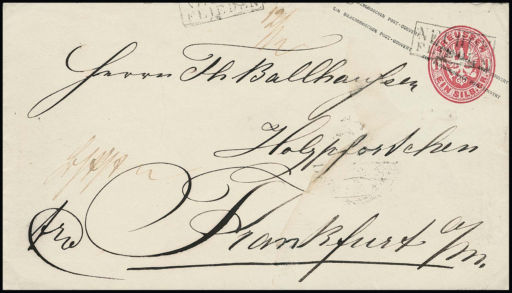 "Neuhof-Flieden", seltener nachverw. Postablage-Ra2 klar auf Preußen-Ganzsache 1 Sgr. (Tinte gering verwischt), sign. Banker, Flemming