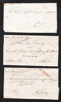 "Ehingen", 1814, roter L1 "R.3. ECHINGEN" auf drei Militärbriefen (Krieg gegen Napoleon)
