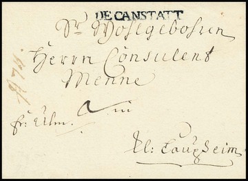 "Cannstatt", 1800, "De Canstatt", seltener L1 in späterer Type, klar auf franz. Militärbrief (vs. Franchise-L2) nach Windsheim, ohne Inhalt, sign. Thoma