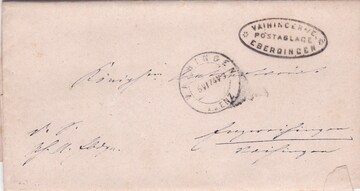 "Eberdingen-Vaihingen a.E.", "Enzvaihingen-Vaihingen a.E.", je Postablagestpl. auf zwei Dienstbriefen, 1872/74