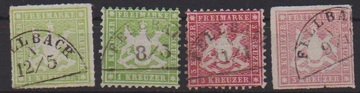 "Fellbach", Segmentstempel in versch. Typen auf vier Werten