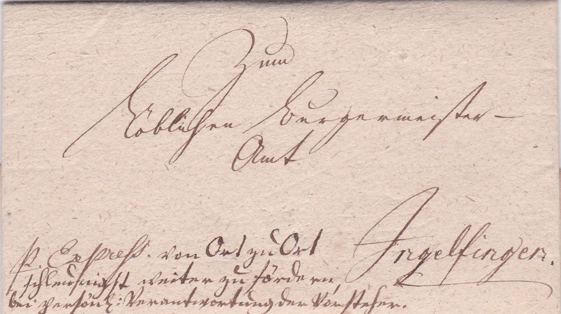 "Künzelsau", 1812, seltener Expreßbrief "von Ort zu Ort" nach Ingelfingen