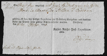 "Kirchberg", 1798, Ortsdruck-Postschein der Reichspost, Hb. K3