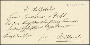 "Magstatt.", 1808, kleiner L1 sehr klar auf vorzüglichem Luxusbrief aus Weil der Stadt nach Stuttgart, eine Stempelrarität in vorbildlicher Erhaltung, Attetst Thoma