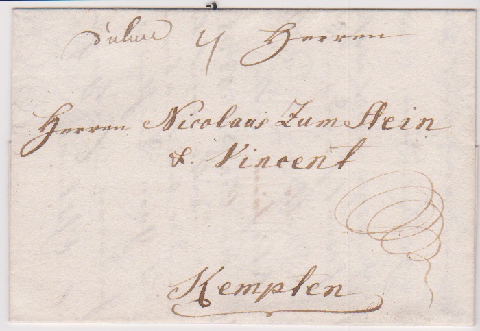 "Ulm", 1793, hs. Aufgabe "d`ulm" auf Brief mit Inhalt aus Langenau nach Kempten