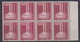 10 Pfg. Industrie und Technik im postfrischen Zehnerblock, ferner 130 Pfg. im Achterblock, vier bzw. zwei Marken je mit schwächerem Farbdruck durch Zylinder-Reinigung