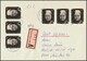 5 Pfg. Heinemann, seltene hohe Mehrfach-Frankatur von 22 Exemplaren, vs./rs., auf R-Brief aus Ludwigshafen 1970