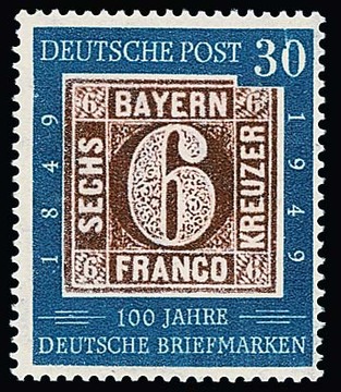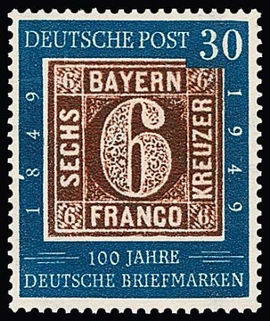30 Pfg. 100 Jahre Briefmarken, nicht häufiger Plattenfehler "Strich unter CH von DEUTSCHE" postfrisch, Mi. 200,-