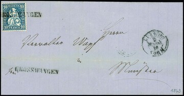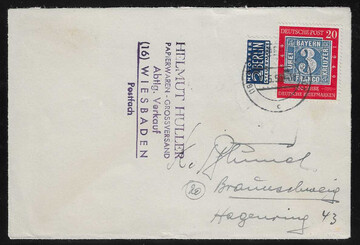 20 Pfg. 100 Jahre Briefmarken mit Plattenfehler II einzeln auf Bedarfsbrief, Mi. 300,-