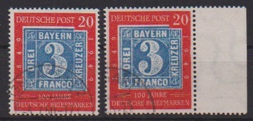 20 Pfg. 100 Jahre Briefmarken, zwei gest. Plattenfehler, eine Fotoexp. Schlegel. Mi. 560,-