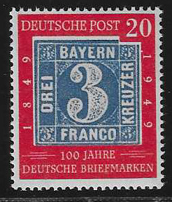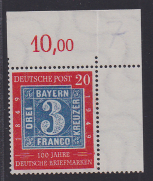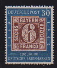30 Pfg. "100 Jahre Briefmarken", Plattenfehler "Rand links bei 8 von 1849 eingekerbt" postfrisch, Mi. 380,-