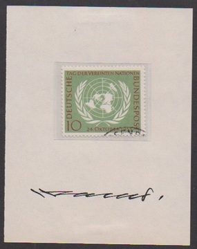 Drei verschiedene, vom Grafiker Prof. Walter entworfene Marken je auf Blättern mit eigenhändiger Unterschrift des Entwerfers