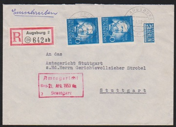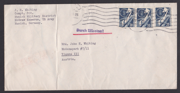 30 Pfg. Verkehrsausstellung per drei als gute Mehrfach-Frankatur auf Militär-Expreßbrief (links Falte ausserhalb) von München 1953 nach Wien
