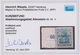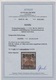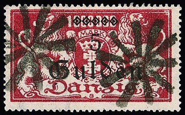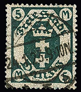 2 Mk. mit zweifacher Aufdruck-Besonderheit tadellos und zentrisch gestempelt "Danzig": zum einen doppelter Netzaufdruck, Spitzen nach unten, sowie Aufdruckfehler VI, "Fuß der rechten 2 dünn und unten ausgefranst". Der doppelte Aufdruck ist im Michel nur bei der weitaus billigeren Nr. 41II mit zeitgerechter Abstempelung mit immerhin 2000,- bewertet, auf der selteneren 43I ohne Bewertung. Hinzu kommt der Aufdruckfehler, so wohl Unikum. Attest Gruber