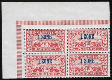 "1. Zone", 2 bis 10 Kr. einheitlich in postfrischen Viererblöcken aus der linken oberen Bogenecke, wenige Werte gering Patina und Ränder teils ungebraucht, Mi. lose 1880,-