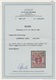 3 Mk. in der seltenen Farbe "karminrot" sauber gestempelt (eine Zahnspitze leicht verkürzt), Attest Gruber. Mi. 800,-