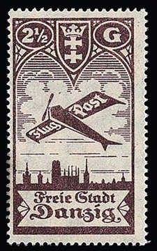 2 1/2 Gld. Flugpost mit dem seltenen Teilauflagen-Plattenfehler "Strich und Bruch im linken Oval" ungebraucht, Mi. ungebraucht ohne Bewertung, gest. "-.-"